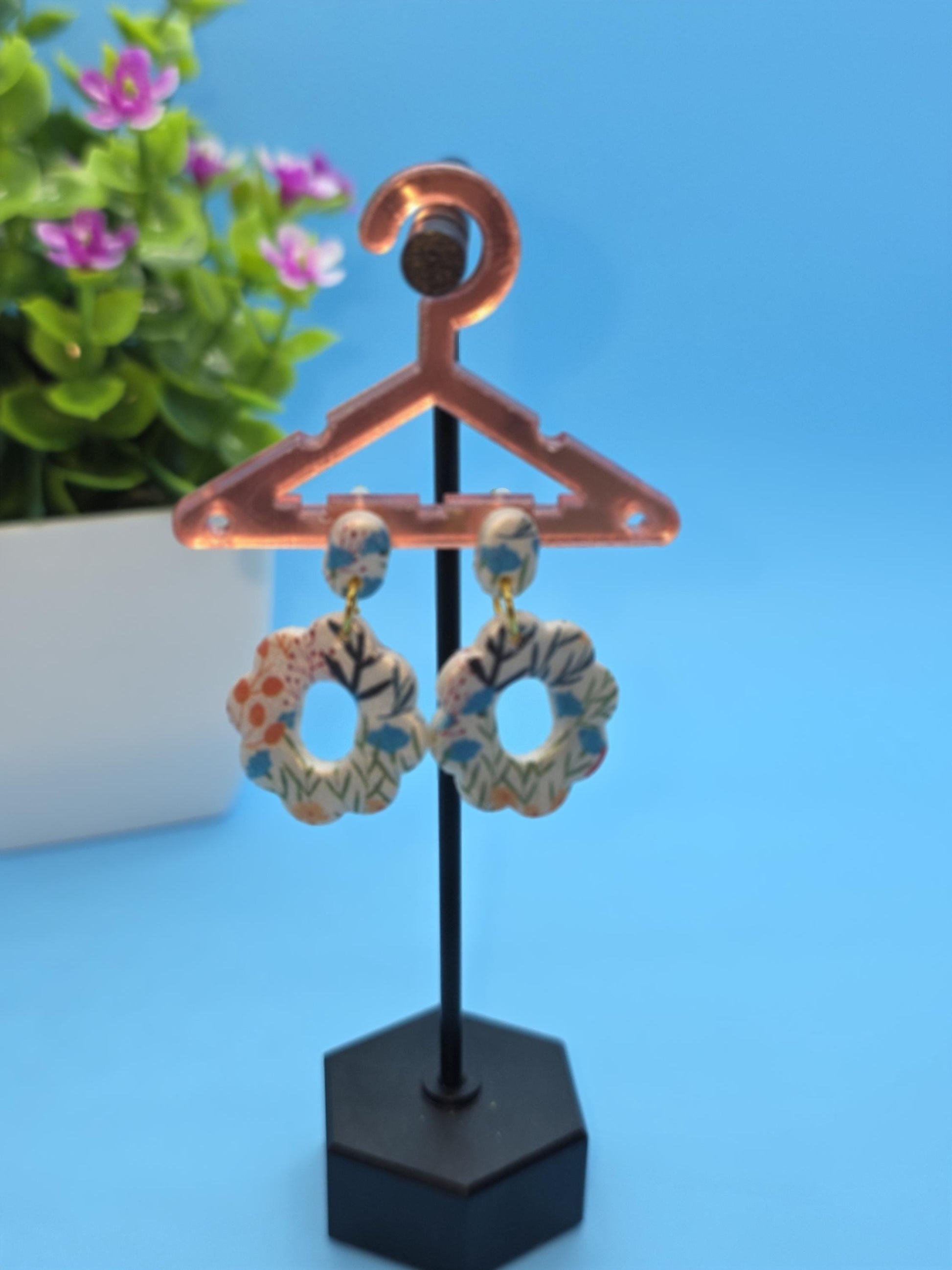 These blooming beauties are a bouquet for your ears πβ¨ Handcrafted from polymer clay and kissed with a delicate water transfer floral design, these dangle earrings feature soft blue-centered petals with subtle green leaf accents. Finished in glossy resin for that extra glow-up, they dangle gently from hypoallergenic posts for a look thatβs fresh, floral, and flawlessly feminine.