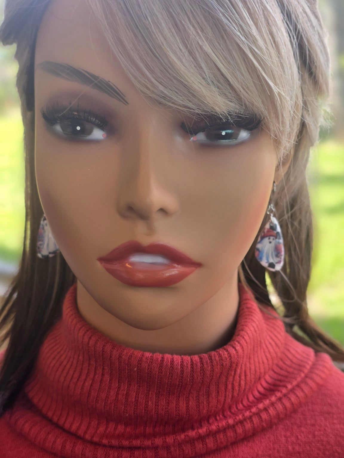 Chunky teardrop dangles with a glossy resin finish and distressed silver-tone findings make these earrings a hauntingly stylish choice. Featuring a cozy-hat ghost, pumpkins, and classic black-and-white checks, they deliver vintage flair with a spooky-chic twist.