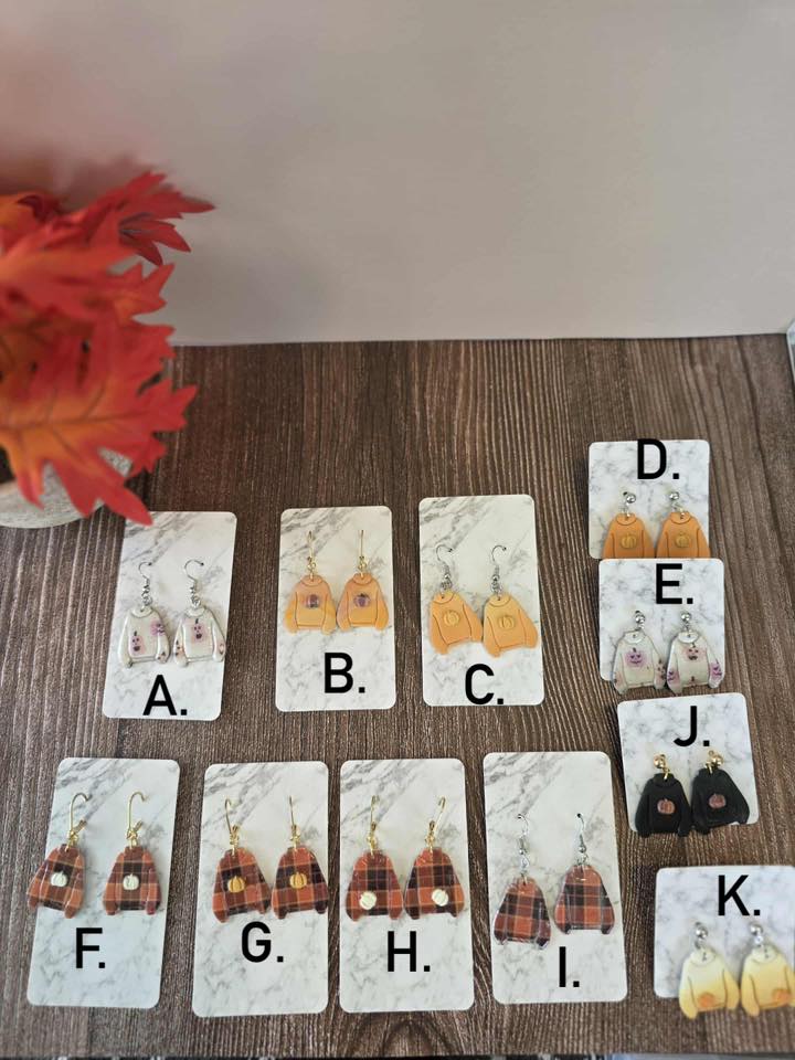 Warm, golden, and perfectly autumn β these sweater-shaped earrings feature a soft mustard clay body with a petite pumpkin emblem. Their matte finish (no resin) keeps the texture natural and rustic, making them feel just like your favorite fall pullover in miniature form.