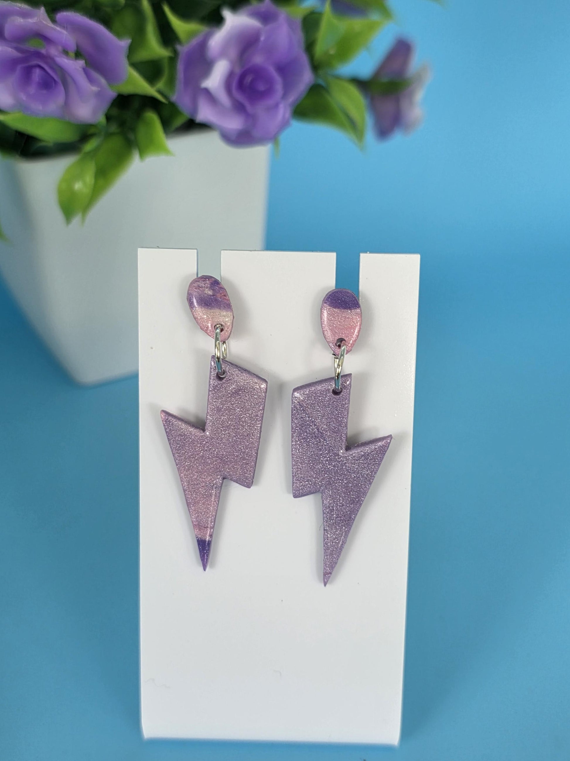 Purple Lightning Bolt Dangles – Soft Marble |Spark Collection |Resin-Coated